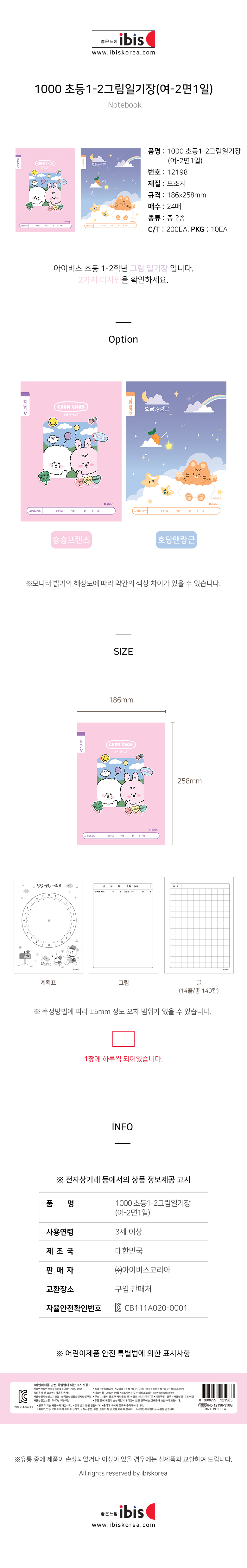 아이비스1000초등그림일기(2면1일-여)/10개입 12198